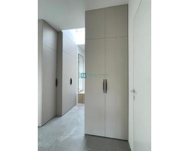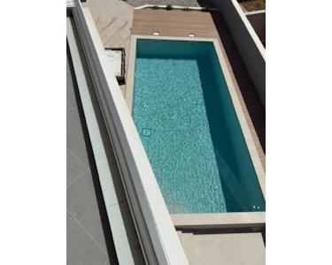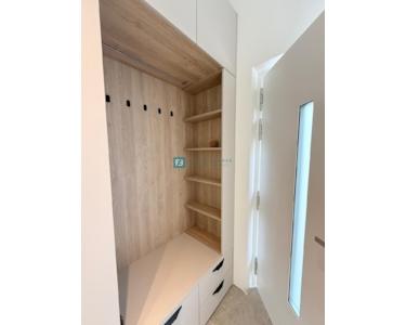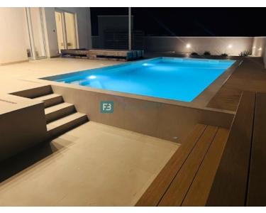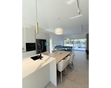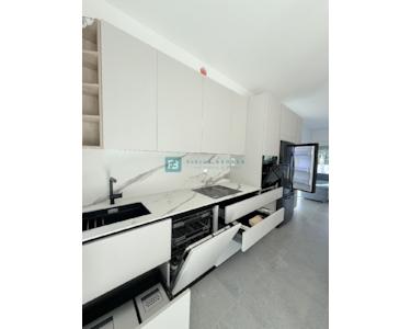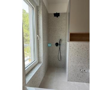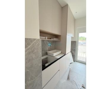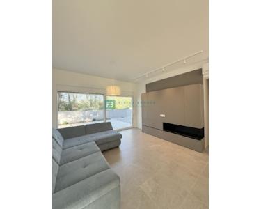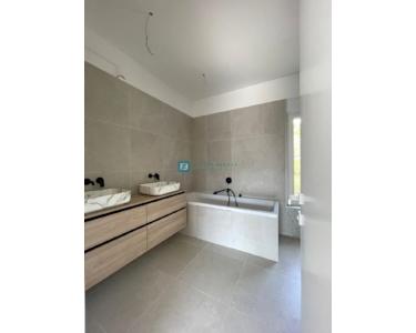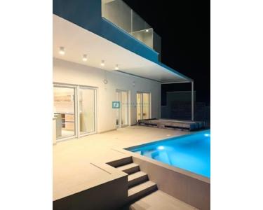Bei der Ausstattung der Villa wurde Wert auf die Auswahl hochwertiger Materialien gelegt. Die Außenschreinerei besteht aus Profilen und Glas der neuesten Generation von Aluk-Schreinerarbeiten, die höchsten energetischen und mechanischen Standards entsprechen. Das bedeutet, dass alle Gläser in den Glaswänden und Fenstern einen absorbierenden UV-Schutz aufweisen und die Erwärmung um 25–30 % reduzieren. Die Schiebewände haben eine Doppelöffnung. Die Fenster sind mit elektrischen Rollläden ausgestattet, und es wurden Vorbereitungen für Moskitonetze getroffen. Die Eingangstür ist einbruchsicher. Das Haus ist mit 10 cm Steinwolle isoliert. Die Decke ist mit Knauf-Decken abgehängt, und für eine elegante Optik wurden integrierte Vorhangschienen installiert (für alle Fenster/Schiebewände außer in Badezimmern und Fluren). Die dezente Designerbeleuchtung sorgt für eine ansprechende und funktionale Beleuchtung der Fassade, aller Räume, des Gartens und des Pools.