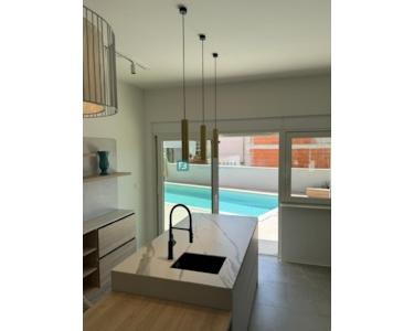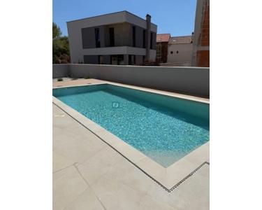 Die Villa ist mit maßgefertigten Möbeln (DOIMO CUCINE Küche mit Geräten im Erdgeschoss, Waschküche mit Waschmaschine und Trockner, Badezimmermöbel), Einbauschränken, Wohnzimmermöbeln und Fluren ausgestattet. Neben hochwertigen Baumaterialien und -geräten bietet dieses Niedrigenergiehaus zusätzliche Annehmlichkeiten. Im gesamten Haus wurden Fußbodenheizung und -kühlung über ein Wassersystem realisiert. In allen Räumen wurden hochwertige Keramikfliesen der Marke „Florim“ verlegt, und das Treppenhaus ist mit Massivholzparkett (Natur-Eichenparkett) ausgelegt. Zusätzlich wurden auf dem Dach Photovoltaikanlagen mit 3,69 kW installiert und in den Badezimmern sind Vorbereitungen für den Anschluss von Elektroheizkörpern getroffen. Die Villa verfügt über Wärmepumpen und Vorbereitungen für Solarkollektoren auf dem Dach. Klimaanlagen mit Brüstungskonvektoren von „Daikin“ befinden sich auf beiden Etagen, im Wohnzimmer und im Flur und sorgen für optimale Temperaturen bei sommerlicher Hitze. Der Swimmingpool ist für eine Wärmepumpe vorbereitet und mit hochwertigen Keramikfliesen der Marke „Florim“ in Beigetönen ausgelegt, die einen angenehm türkisfarbenen Wassereffekt erzeugen. Zur Poolausstattung gehören neben der hochwertigen Grundausstattung auch Elektrolyse zur Reinigung sowie Hydromassagedüsen an einer Stelle und zwei Düsen auf vier Ebenen. Im Hof befinden sich drei Parkplätze.