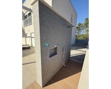 Das Erdgeschoss mit einer Gesamtwohnfläche von 98,97 m² besteht aus einem Eingangsbereich/Flur, Badezimmer, Waschküche, Treppenhaus, Schlafzimmer 1 mit eigenem Bad und begehbarem Kleiderschrank, Schlafzimmer 2, einem geräumigen Wohnzimmer mit Esszimmer und einer Küche mit Zugang zu einer überdachten Terrasse mit elektrisch betriebener Pergola. Davor befinden sich ein 40 m² großer Pool und ein angelegter Garten, eine Sommerküche sowie eine Außendusche mit Warmwasser.