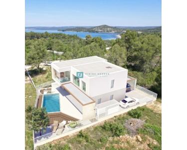 ŠIBENIK-BILICE, neue, möblierte Luxusvilla, 2 separate Wohnungen, 400 m vom Meer
