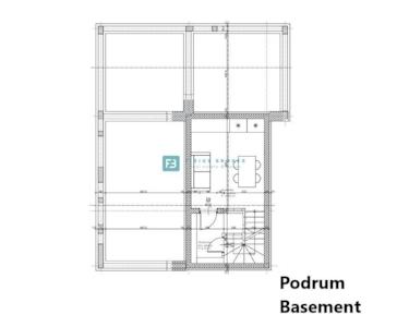 Das dreistöckige Gebäude besteht aus Keller, Erdgeschoss und Obergeschoss. Das Untergeschoss mit einer Gesamtwohnfläche von 35,83 m² umfasst einen Abstellraum mit maßgefertigten Einbauschränken und einen voll ausgestatteten Maschinenraum. Die Ausstattung ist unabhängig und für jede Etage völlig autonom.