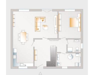 Das behagliche Haus mit Satteldach punktet mit einem gut durchdachten Grundriss. Der offen gestaltete Wohn-/Ess- und Kochbereich ist lichtdurchflutet. Ein praktischer Hauswirtschaftsraum ist direkt neben der Küche platziert. Komplettiert wird das Raumangebot im Erdgeschoss mit einem Gäste-WC, das optional auch als Duschbad ausgeführt werden kann, einer Diele und einem Haustechnikraum.