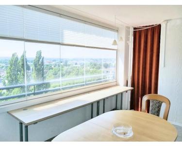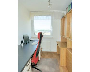 Diese attraktive Eigentumswohnung befindet sich im 9. Obergeschoss eines sehr gepflegten Mehrfamilienhauses. Das Haus wurde 1972 mit Vollkeller und Tiefgarage auf einem ca. 9.383 m² großen Grundstück errichtet. Die hier angebotene Wohnung verfügt über eine Wohnfläche von ca. 116 m² und eine große verglaste Südloggia mit herrlichem Blick in die Ferne. Über den Windfang gelangen Sie in die geräumige Diele, die Sie in alle Wohnbereiche führt. Es erwartet Sie ein großes Wohn-/Esszimmer mit Zugang zur Loggia, ein Schlafzimmer sowie ein Kinderzimmer - ebenfalls mit Zugang zur Loggia – und ein Arbeitszimmer. Des Weiteren stehen Ihnen eine Küche mit EBK, ein modernes Duschbad, ein Gäste-WC und ein Abstellraum zur Verfügung. Zu dem Angebot gehört ein separater Kellerraum. Der schöne Gemeinschaftsgarten ist ein beliebter Treffpunkt für einem Plausch mit den Nachbarn und rundet die angenehme Wohnatmosphäre ab. Die Immobilie befindet sich in einem gepflegten Zustand und bietet ausreichend Platz für eine kleine Familie.