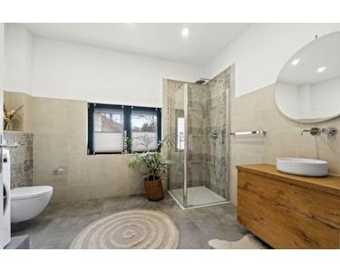 - Wohneinheit mit ca. 145 m² Wohnfläche, Fliesen mit Holzoptik und Badezimmer gefliest