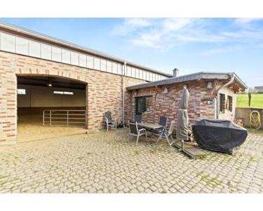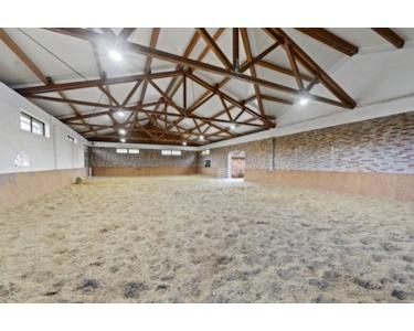 Reithalle ca. 400m² - offen liegender Dachstuhl (Dach mit Schallschutz gegen Regen/ Hagel und Photovolthaikanlage), 7 Pferdeboxen, Reiterstübchen ca. 30m² (Küchenzeile, Kamin, Duschbad)
