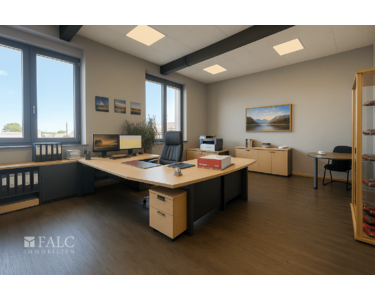 Dieses Büro vereint modernes Design mit praktischer Funktionalität und bietet Gewerbetreibenden ein repräsentatives Arbeitsumfeld mit Wohlfühlfaktor.
