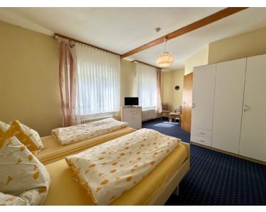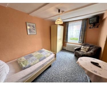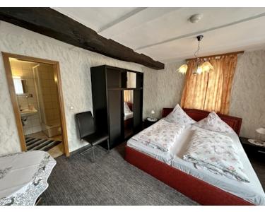Zum Verkauf steht eine charmante und geschichtsträchtige Gaststätte mit angeschlossener Pension auf einem großzügigen Grundstück von ca. 4.942 m². Das Ensemble besteht aus einem historischen Fachwerkhaus aus dem Jahr 1863, der ehemaligen Oberförsterei, sowie einem ergänzenden Massivbau aus dem Jahr 1968. Beide Gebäude bilden zusammen eine vielseitig nutzbare Einheit mit einer gesamten Nutzfläche von ca. 425 m² und bieten sowohl Gastronomen als auch Hoteliers oder Investoren mit Weitblick attraktive Möglichkeiten. Im Erdgeschoss des Fachwerkhauses befindet sich die traditionsreiche Gaststätte, die über zwei großzügige Säle, eine Theke mit Sitzgelegenheiten sowie einen separaten Raucherraum verfügt. Die sanitären Anlagen für Gäste (Damen- und Herren-WCs) befinden sich in einem angrenzenden kleineren Massivbau. Ebenfalls im Erdgeschoss sind eine große, professionell ausgestattete Küche mit eigenem Kühlraum, ein privates Zimmer sowie ein Büroraum untergebracht. Im Kellergeschoss steht ausreichend Lagerfläche zur Verfügung, unter anderem für die Getränkelagerung. Das Obergeschoss des Fachwerkhauses beherbergt sechs gemütliche Fremdenzimmer, jedes mit einem eigenen angrenzenden Badezimmer. Ein großzügiger Balkon auf dieser Etage bietet den Gästen einen ruhigen Rückzugsort mit Blick ins Grüne und unterstreicht den einladenden Charakter des Hauses. Der angrenzende Massivbau erstreckt sich über zwei Geschosse und ergänzt das Angebot der Pension mit weiteren fünf Fremdenzimmern – zwei im Erdgeschoss, drei im Obergeschoss – ebenfalls jeweils mit eigenem Bad. Im Obergeschoss stehen den Gästen zusätzlich ein großzügiger Aufenthaltsraum sowie eine vollständig ausgestattete Gemeinschaftsküche zur Verfügung, was das Objekt auch für Gruppen oder Monteure besonders attraktiv macht. Der weitläufige Außenbereich bietet zahlreiche Nutzungsmöglichkeiten. Vor dem Gebäude befindet sich ein großer Hof mit mehreren Stellplätzen für Gäste. Hinter dem Haus lädt eine großzügige Garten- und Sitzfläche zum Verweilen ein. Ein weiterer Hofbereich mit einer gut erhaltenen Scheune sowie einem traditionellen Backhaus bietet Raum für besondere Veranstaltungen oder zusätzliche Nutzungsideen. Diese gepflegte und vielseitig nutzbare Immobilie verbindet historischen Charme mit funktionaler Ausstattung und liegt eingebettet in ruhiger, naturnaher Umgebung. Ob klassischer Gastronomiebetrieb, Pension mit Eventcharakter oder individuelle Neuausrichtung – dieses Anwesen bietet eine solide Basis und viel Potenzial für unternehmerische Ideen. Sind Sie neugierig geworden? Dann rufen Sie uns doch einfach für nähere Informationen oder die Vereinbarung eines Besichtigungstermins an! Bitte sehen Sie sich auch unseren virtuellen 360°-Rundgang zu dieser Immobilie an! So bekommen Sie bereits vorab einen realistischen Eindruck von den Gegebenheiten vor Ort.