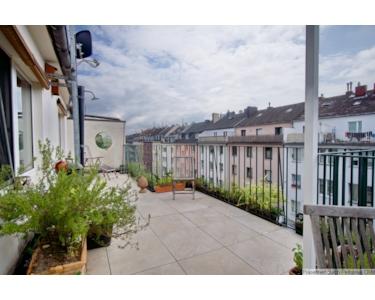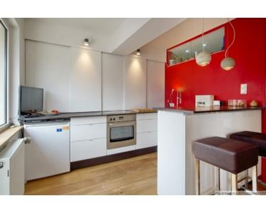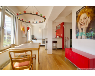 Diese möblierte 3-Zimmerwohnung ist einzigartig möbliert und der sehr helle große Wohnbereich verläuft einmal im Kreis und bietet drei Sitzbereiche an, je nach Geschmack und Laune zum Verweilen, Entspannen und Gäste bewirten, einladen. Dazu gehört ein großer Terrassenbalkon mit großen Steinzeugfliesen ausgelegt. Der Wohnbereich befindet sich, ebenso wie die offene Einbauküche und das Badezimmer im 5. OG. Auf der sechsten Etage befinden sich die 2 Schlafzimmer und eine kleine Galerie.