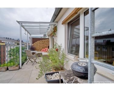 Es gibt einen Terrassenbalkon nach vorne raus und einen kleinen Balkon nach hinten raus.