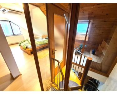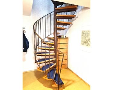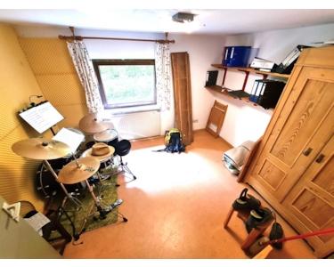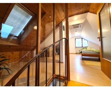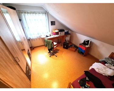 Über eine Wendeltreppe gelangen Sie in das sehr schöne Studiozimmer im Dachgeschoss. Hier haben Sie ca. 20 m² Platz (keine Wohnfläche, da die Deckenhöhe ca. 2,25 m statt 2,30 m hat) für ein Schlafzimmer, Spielzimmer etc. Der Bereich hat eine Klimaanlage als Splitgeräte (Heizen und Kühlen).