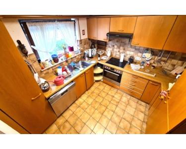Rechts die Küche, welche einen weiteren Zugang vom Wohn-/ Esszimmerbereich hat.