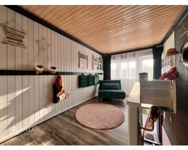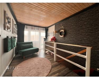 Im Obergeschoss erwartet Sie ein geräumiges Wohnzimmer oder alternativ ein zweites Schlafzimmer. Dieser Raum bietet direkten Zugang zu einem kleinen Balkon, von dem Sie einen schönen Blick auf das Wasser und die Umgebung genießen können – ideal für entspannte Stunden im Freien.