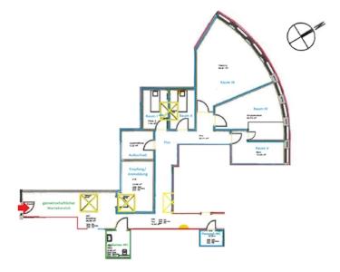 Die Praxis verfügt über fünf helle Behandlungsräume, die alle vom zentralen Flur aus zugänglich sind sowie einen gemütlichen Aufenthaltsraum für Ihr Team. Sie brauchen noch mehr Fläche? Kein Problem, ein weiterer Raum mit ca. 21 m² (Nettofläche) kann bei Bedarf dazu gemietet werden - sprechen Sie uns gerne an!