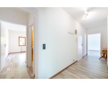 Über den Flur betreten Sie links das helle Wohnzimmer. Die großen Fenster sorgen für einen guten Lichteinfall. Von hier aus gelangen Sie auf den großen Balkon, auf dem Sie manchen Abend in Ruhe ausklingen lassen werden.