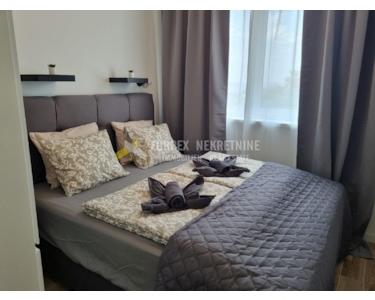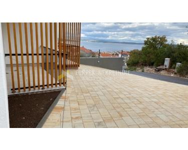 Jede Wohnung besteht aus einem Schlafzimmer, Wohnzimmer mit Küche, Bad und Balkon. Der Balkon bietet einen Blick auf das Meer und die Insel Krk.