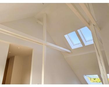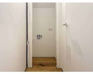 Der Wohnbereich erhält seinen unverkennbaren Charakter durch seine hohen Decken, die vier großen Dachfenster, sowie die beispiellose Balkenstruktur. Das Schlafzimmer verfügt über eine angrenzende Ankleide. Der zweite, abgeschlossene Raum ist ebenfalls geräumig und befindet sich am anderen Ende des Flures.