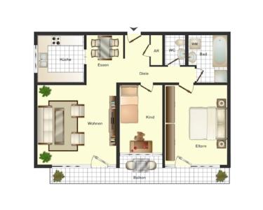 - drei Wohn- und Schlafräume
