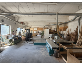 Der Bankraum, Maschinenraum und das Lager haben eine Nutzfläche von ca. 380 m². Nebenräume wie WC's, Spänebunker, Aufenthalts- und Waschraum stehen mit ca. 115 m² Nutzfläche zur Verfügung.