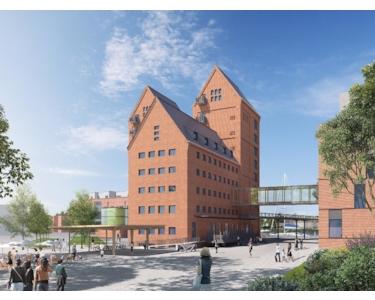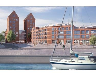 Besonders herausragend und stadtbildprägend sind hierbei die beiden Speichertürme mit dem angrenzenden Sackspeicher. Der historische und denkmalgeschützte Doppelspeicher mit seinen 40 m hohen Türmen erhebt sich gefällig über die restliche Hafenbebauung hinaus . Die Architektur erinnert zusammen mit dem angrenzenden Sackspeicher an einen klassischen Dombau mit 2 Türmen und einem Kirchenschiff. Diese Gegebenheiten inspirierten zu einer ungewöhnlichen Nutzung der historischen Gebäude und bieten ein exklusives Zuhause für alle, die das ganz Besondere lieben.