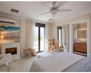 Deckenventilatoren im Wohnzimmer, im Schlafzimmer im Obergeschoss und auf der Terrasse