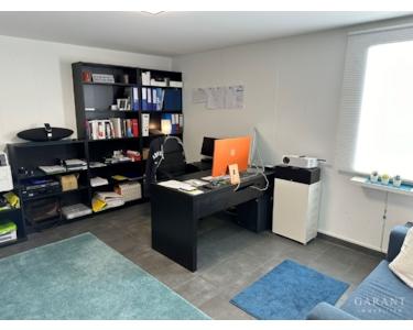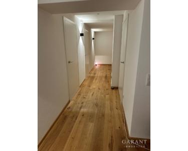 Im Obergeschoss findet man ein Gästezimmer und ein riesengroßes Schlafzimmer, welches in zwei jeweils ca. 19 qm große Zimmer durchaus geteilt werden kann. Das Badezimmer ist auch hochwertig ausgestattet und verfügt über zwei Handwaschbecken, Dusche und WC.