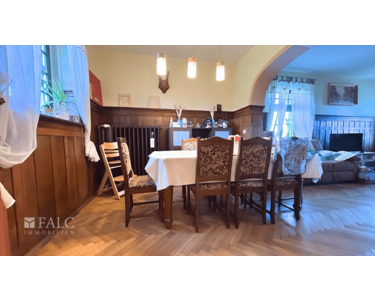Im Erdgeschoss empfängt Sie ein großzügiger Wohnbereich, der in das Esszimmer übergeht und viel Platz für gemeinsame Stunden bietet. Die angrenzende Küche ist praktisch gestaltet und ermöglicht direkten Zugang zur sonnigen Terrasse sowie zum liebevoll gestalteten Garten.