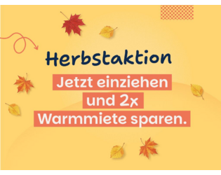 *Jetzt 2x Miete sparen. Alle, die im Herbst mit uns auf Wohnungssuche gehen, können gleich zwei Monate die Warmmiete sparen. Die Aktion gilt für Neumieterinnen und Neumieter der TAG Wohnen, für ausgewählte Wohnungen und bei einem Mietvertragsbeginn bis 16. Dezember 2025. Nicht mit anderen Aktionen kombinierbar.