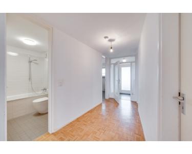 Über einen Laubengang mit Ausblick auf die Münchner Skyline gelangen Sie in die angebotene 2,5-Zimmer-Wohnung mit rund 72,62 Quadratmetern Wohnfläche.