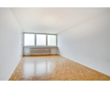 Große Fensterflächen sorgen für ein freundliches Raumgefühl und führen auf den sonnigen Südbalkon mit weitem Blick über München bis hin zu den Alpen.