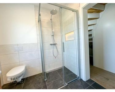Im 1. OG finden Sie ein modern ausgestattetes Badezimmer mit einer großen Dusche, einem WC,