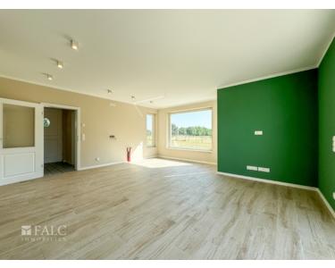 Vom Flur aus erwartet Sie ein großzügiger Wohnbereich mit großen Fensterfronten und direktem