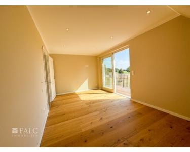 Zugang zur 36 m² großen Terrasse. Die Schiebetür zur sonnenverwöhnten Terrasse ermöglicht
