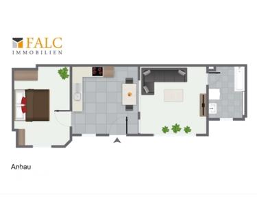 Erdgeschoss Anbau: ca. 49 m² Wohnfläche – kompakte 2-Zimmer-Wohnung mit Zugang vom Hof