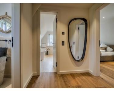 Jede Doppelhaushälfte mit einer Gesamtfläche von ca. 142 m² erstreckt sich über insgesamt vier Ebenen und besticht mit einer gut durchdachten Aufteilung sowie hochwertigen Materialien aus Naturstein und dreischicht-verleimter Landhausdiele sowie zahlreichen maßgefertigten Tischlereinbauten. Auch verfügt jede Doppelhaushälfte über eine Erdwärme-Pumpenanlage.