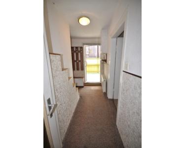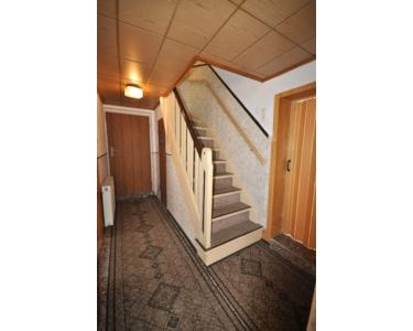 Treppe: Zugang zum Obergeschoss = Holztreppe mit Handlauf und Teppichboden belegt