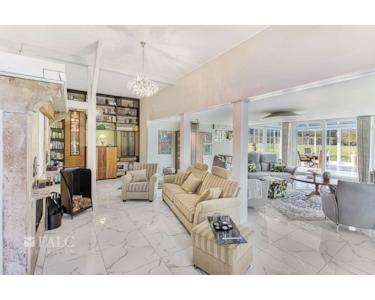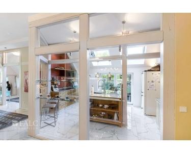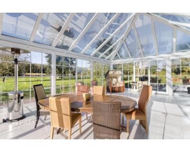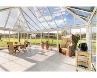 Das Herzstück des Hauses bildet das großzügige Wohnzimmer, das durch eine gemütliche Kaminecke mit einem stilvollen Kamin zum Verweilen einlädt. Angrenzend daran befindet sich ein separates, ebenso großzügiges Wohnzimmer, das zusätzlichen Raum für Entspannung und geselliges Beisammensein bietet. Der vollständig verglaste Wintergarten, der an das Hauptwohnzimmer anschließt, schafft eine lichtdurchflutete und einladende Atmosphäre, die den Innenraum optisch erweitert.