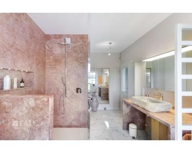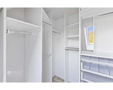 Das Schlafzimmer besticht durch eine angrenzende, großzügige Ankleide, die viel Stauraum bietet. Ergänzt wird dieser Bereich durch ein edles, luxuriös ausgestattetes Badezimmer, das durch seine hochwertige Gestaltung zum Entspannen einlädt.