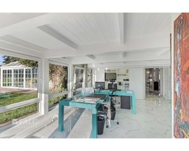 Zudem gibt es ein helles, offenes Büro mit einer großen Fensterfront, die einen wunderbaren Ausblick auf den eigenen Hof ermöglicht und so eine angenehme Arbeitsumgebung schafft.