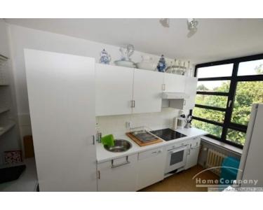 Diese sanierte 3-Zi. Wohnung geht über 2 Etagen. Im unteren Bereich befindet sich das große Wohnzimmer mit Stuck, einem Parkettfußboden und dem vorgelagerten großen Balkon. Ein etwas separierter Essbereich bietet Platz für 4 Personen. Die voll ausgestattete Küche befindet gleich nebenan. Vom Flur aus gelangt man über eine Treppe in die 2 Etage. Hier befindet sich das Schlafzimmer mit einem Doppelbett und einem geräumigen Kleiderschrank. Vom Gästezimmer, mit einer bequemen Schlafcouch betritt man den oberen Balkon. Im Badezimmer, mit einer Dusche ist die Waschmaschine untergebracht.