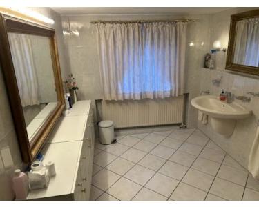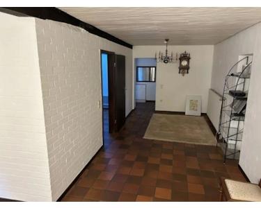 Das Ensemble bietet insgesamt **ca. 220 m² Wohnfläche** und zusätzlich rund **80 m² Nutzfläche** – verteilt auf **Keller, Garage und Nebengebäude**. Der Zugang erfolgt über den Hauptflur, von dem aus sich rechter Hand die ca. **65 m² große Einliegerwohnung** mit separatem Eingang erschließt. Diese verfügt über ein Wohnzimmer, Schlafzimmer, Küche, Diele sowie ein Duschbad – ideal für Mehrgenerationenwohnen, Gäste oder zur Vermietung.