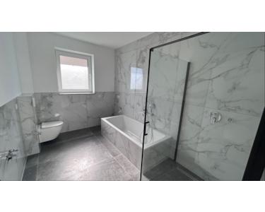 - 2 moderne Tageslichtbäder mit edlen Großformatfliesen