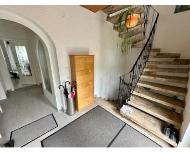 Überwiegend helle, pflegeleichte Fliesenböden in den Wohnbereichen sorgen für ein freundliches Raumklima. Schönes Terrazzo-Treppenhaus, auch die Loggia im Obergeschoss wurde mit neuen Fliesen belegt.