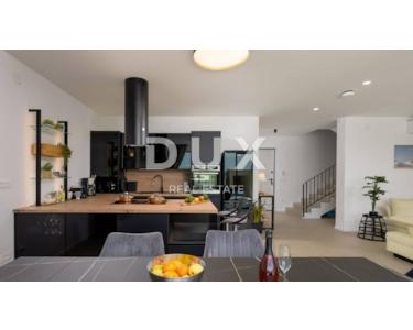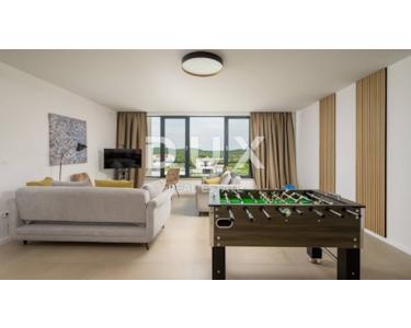 Zu vermieten vom 15.9.2025 bis 1.6.2026. In einem ruhigen Dorf in der Nähe von Rovinj steht diese elegante und modern eingerichtete Villa mit 216 m² zur Langzeitmiete zur Verfügung. Die Lage bietet absolute Privatsphäre und Ruhe, ideal für ein entspanntes Leben in der Natur, während gleichzeitig alle notwendigen Annehmlichkeiten in der Nähe sind. Im Erdgeschoss der Villa befinden sich eine geräumige Eingangshalle, eine Gästetoilette und ein offen gestaltetes Wohnzimmer, das mit der Küche und dem Esszimmer der Marke Veneta Cucine verbunden ist. Große Glaswände sorgen für viel Tageslicht und direkten Zugang zum Garten und Pool. Auf derselben Etage befindet sich das Hauptschlafzimmer mit eigenem Bad und Zugang zum Garten sowie ein praktischer Abstellraum mit externem Zugang. Im Obergeschoss gibt es zwei komfortable Schlafzimmer, jedes mit eigenem Bad, Klimaanlage und TV. Ein zusätzlicher Raum mit 42 m² ist derzeit als Fitnessraum/Spielzimmer ausgestattet, kann aber leicht an die Bedürfnisse des Mieters angepasst werden. Die Villa ist mit einer elektrischen Fußbodenheizung mit WLAN-Steuerung und Klimaanlage in allen Zimmern ausgestattet, was ganzjährigen Komfort gewährleistet. Der Außenbereich umfasst einen 48 m² großen Swimmingpool mit Salzelektrolyse-Technologie, eine Außendusche und eine 26 m² große überdachte Sommerküche – ideal für geselliges Beisammensein und Zeit im Freien. Der Garten verfügt über ein automatisches Bewässerungssystem und zwei überdachte Parkplätze. Für Sicherheit sorgen eine Alarmanlage, Videoüberwachung, einbruchsichere Türen und Rauchmelder. Die Villa ist außerdem für die Installation von Solarmodulen und einer Ladestation für Elektrofahrzeuge vorbereitet. Die Immobilie wird komplett möbliert und ausgestattet vermietet und ist bezugsfertig. Sie ist die ideale Wahl für alle, die ein luxuriöses und ruhiges Leben in der Nähe von Rovinj suchen. Für weitere Informationen und Besichtigungstermine kontaktieren Sie uns bitte.