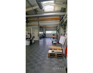 Im Erdgeschoss kann die Halle in zwei getrennte Bereiche für Produktion und zusätzlich ein Lager aufgeteilt werden. Diese drei Bereiche verfügen über eine separate Zufahrt durch Sektionaltore von außen.