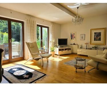 Die Erdgeschosswohnung ist das Herzstück des Hauses: Auf ca. 174 m² verteilen sich vier großzügige Zimmer, zwei moderne Bäder sowie ein über 30 m² großer, verglaster Wintergarten mit Fußbodenheizung. Von hier aus gelangen Sie direkt auf die weitläufige Terrasse und in den traumhaften Garten. Das Hauptbad wurde 2019 hochwertig modernisiert. Die offene und durchdachte Raumaufteilung lässt auf Wunsch auch eine Umgestaltung in eine 6-Zimmer-Wohnung zu.