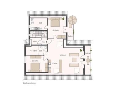 Die ca. 87 m² große Dachgeschosswohnung punktet mit einem offenen Wohn-/Essbereich, zwei Schlafzimmern, einem modernen Badezimmer (2022 saniert), Gäste-WC sowie zwei Balkonen mit herrlicher Aussicht. Die Wohnung wirkt luftig und behaglich zugleich.