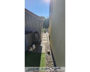 Zu der Wohnung gehören zwei Stellplätze. Die Terrasse verfügt über eine elektrische Markise die sich bis zum Zaun rausfahren lässt. Der Garten verfügt über ein Gartenhäuschen, ideal zum Verstauen von Gartengeräten etc.