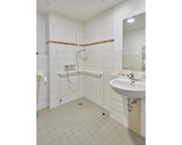 Jedes dieser Einzelzimmer ist hell und freundlich gestaltet und verfügt über ein eigenes behindertengerechtes Badezimmer, welches mit einer ebenerdigen Dusche, einem WC und einem Waschtisch ausgestattet ist. Für das gemeinschaftliche Leben der Bewohner sorgen die modernen, großzügig gestalteten und hellen Gemeinschaftsräume. Diese verfügen größtenteils über Zugänge zur Terrasse, Balkone oder Dachterrassen und laden zum Verweilen ein.