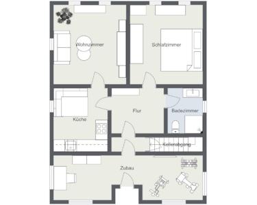 Ebenfalls erwirbt man ein Nebengebäude, welches sich östlich vom Haus befindet.