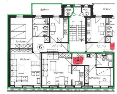 - Großer Wohn- und Essbereich mit direkter Verbindung zum mittleren Gebäudetrakt (ehem. Wohnung 8) - bietet Potenzial für individuelle Nutzung oder Erweiterung